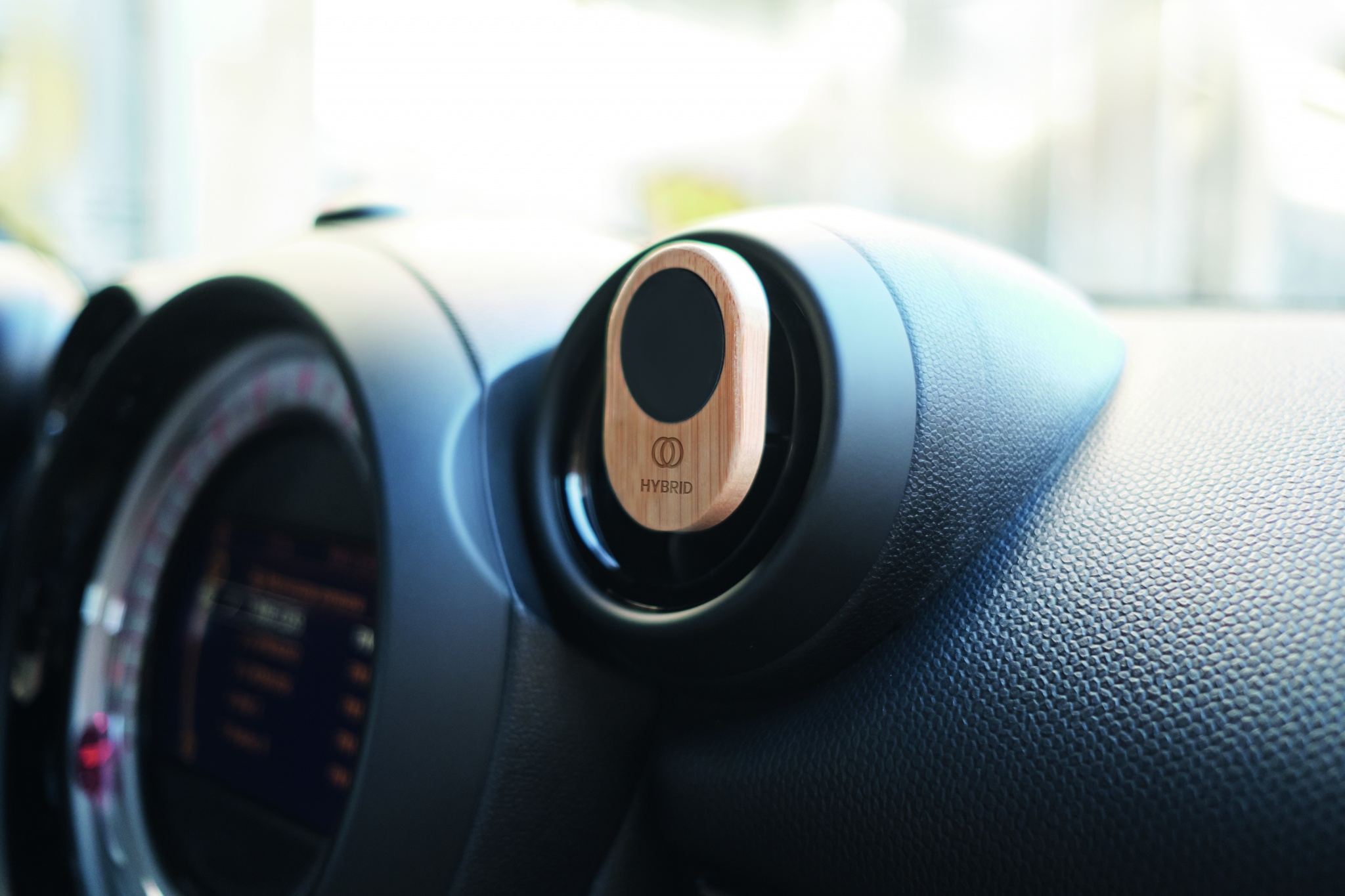 Magnetisk telefonhållare för montering på bilens luftgaller i bambumaterial.