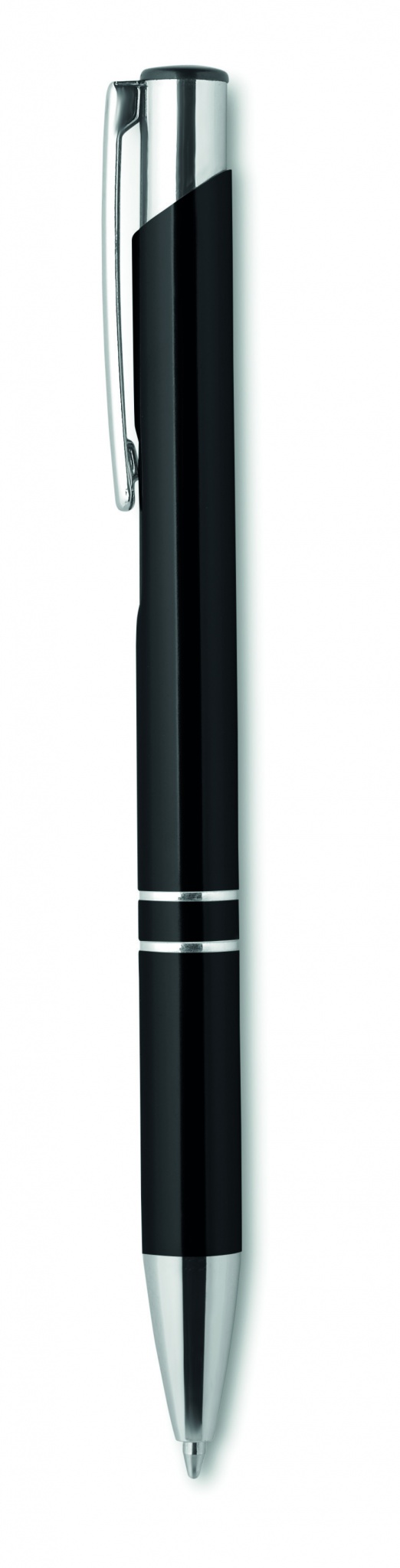 Kulspetspenna i aluminiumfinish. Blått bläck.