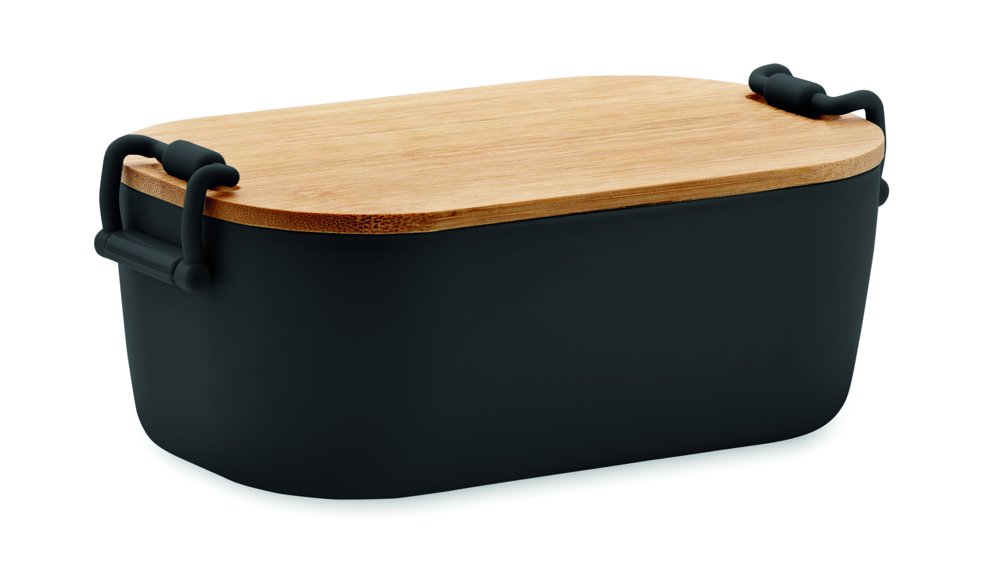 PP-lunchlåda med 2 sidospännen och bambulock. Volym 700 ml.