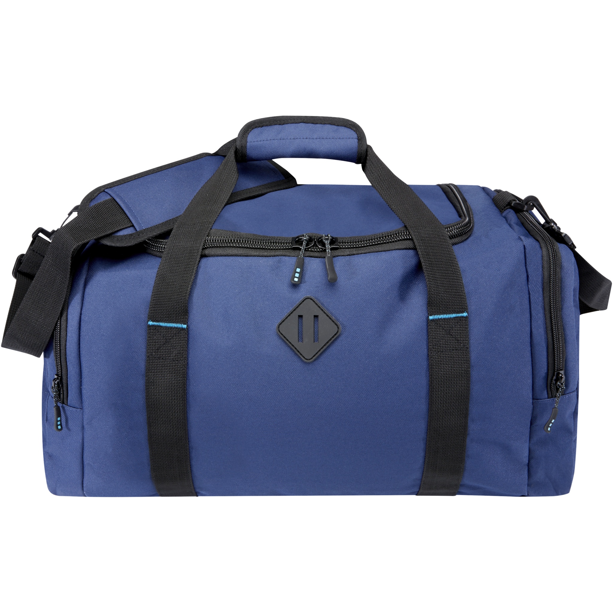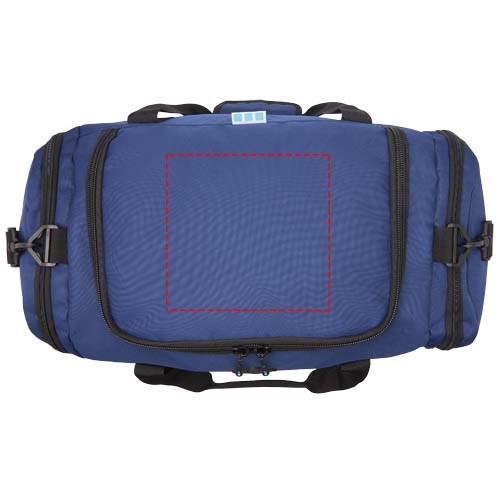 Rädda haven en väska i taget! REPREVE® Our Ocean™ duffelväska är tillverkad av återvunnen, havsbaserad plast. Har ett stort huvudfack med dragkedja, två sidofickor med dragkedjor för t.ex. skor eller accessoarer, bärhandtag och en avtagbar, vadderad och justerbar axelrem.