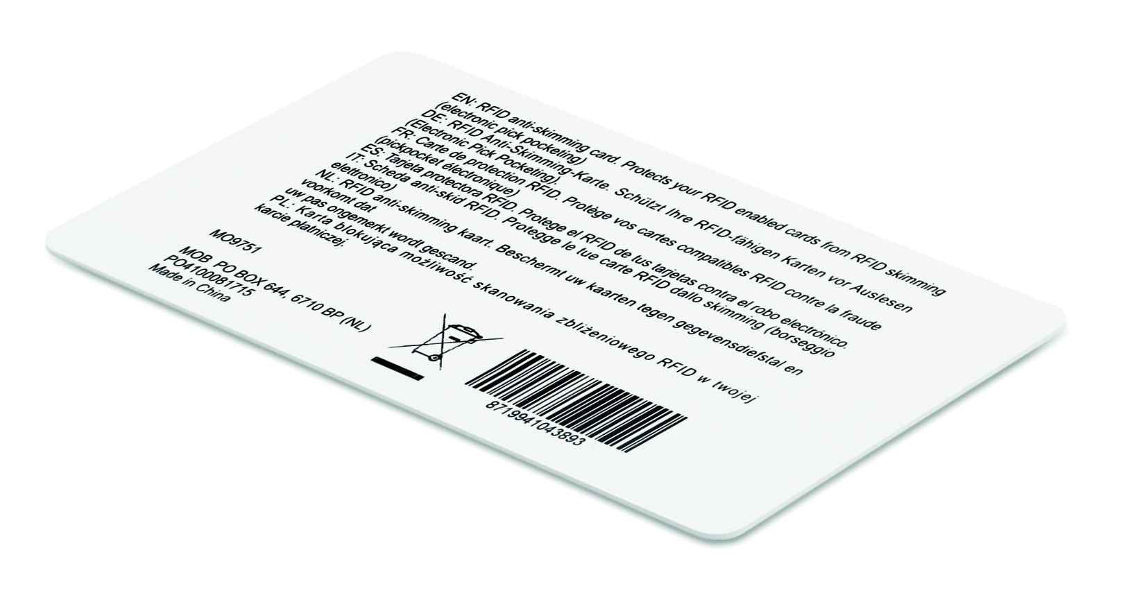 Logotrade reklamprodukter bild: RFID anti-skimming kort, chip