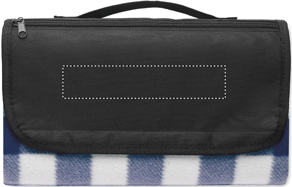 Vikbar RPET 150 gr/m² polarfleece picknickfilt med vattenavvisande belagd PEVA-baksida. Inkluderar en ficka med dragkedja på framsidan och en kort bärrem.