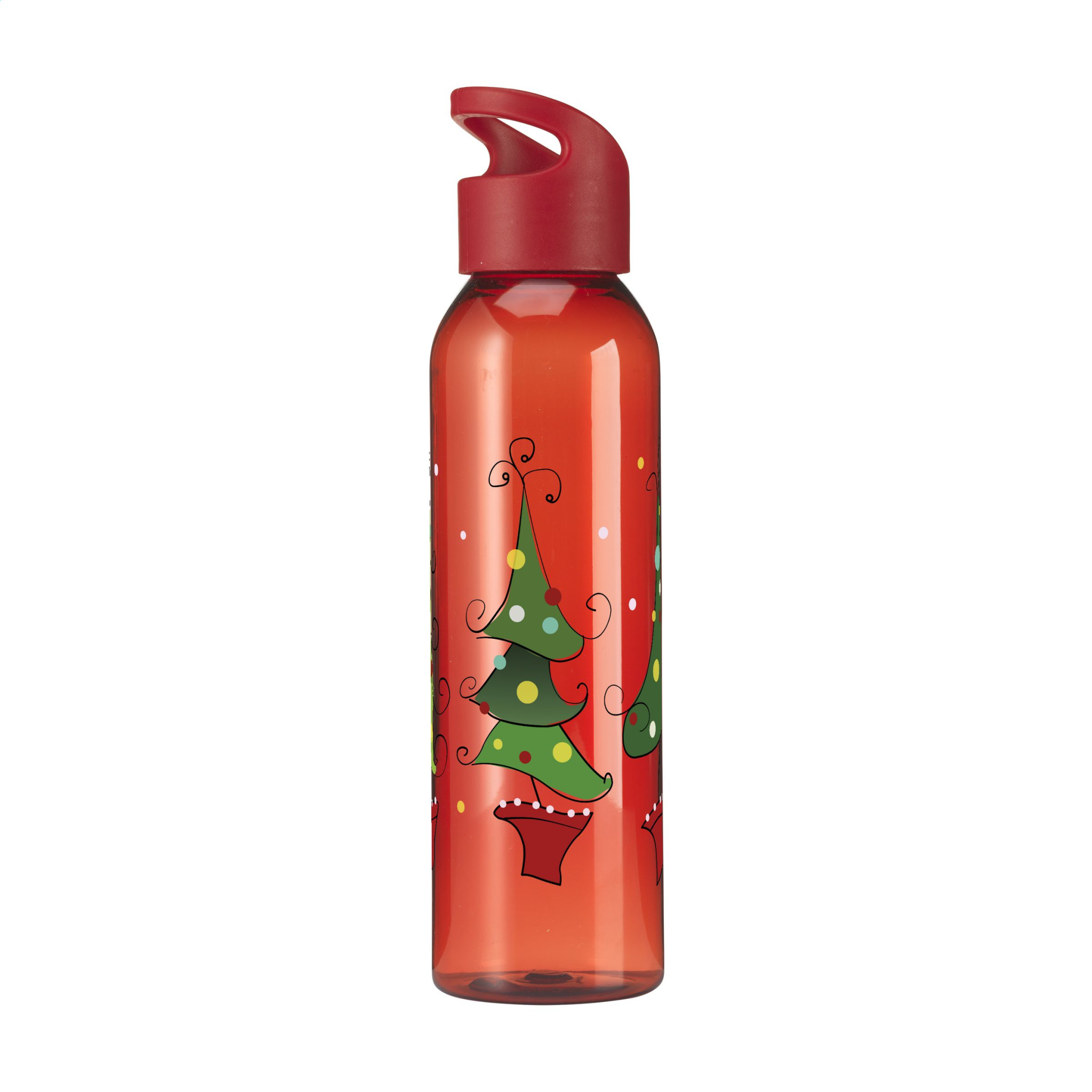 WoW! Lyxig vattenflaska gjord av klar RPET, tryckt med en standard juldesign. Med ett praktiskt skruvlock i plast. BPA-fri, läcksäker och återanvändbar. Tål inte diskmaskin. Kapacitet 650 ml. GRS-certifierad. Totalt återvunnet material: 83%. - Den här produkten är tryckt med en vanlig juldesign. Val av 6 olika mönster som visas på bilderna. Det är inte möjligt att skräddarsy en design.