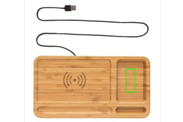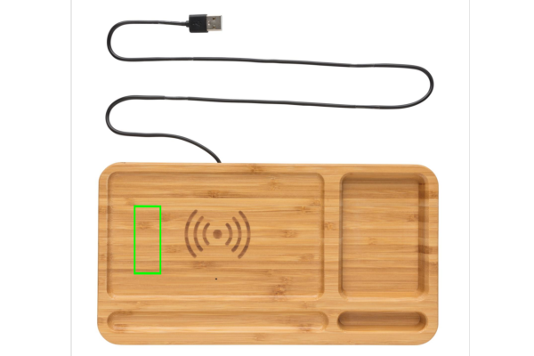 Logotrade reklamprodukter bild: Skrivbordsorganisatör i bambu 10W trådlös laddare