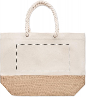 Strandväska eller shoppingväska i canvas med snörhandtag och jutedetaljer. 280 gr/m².