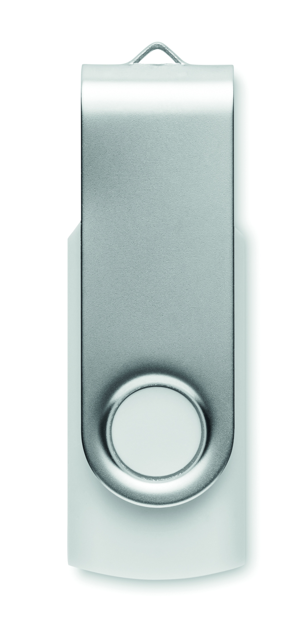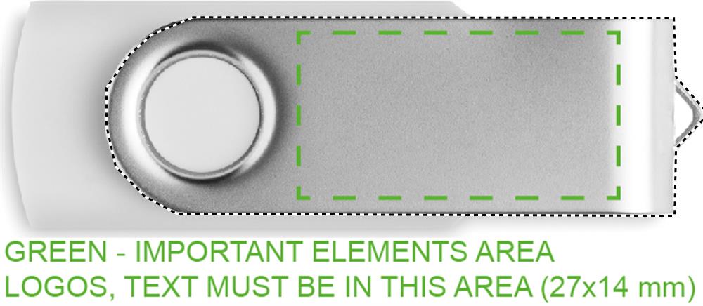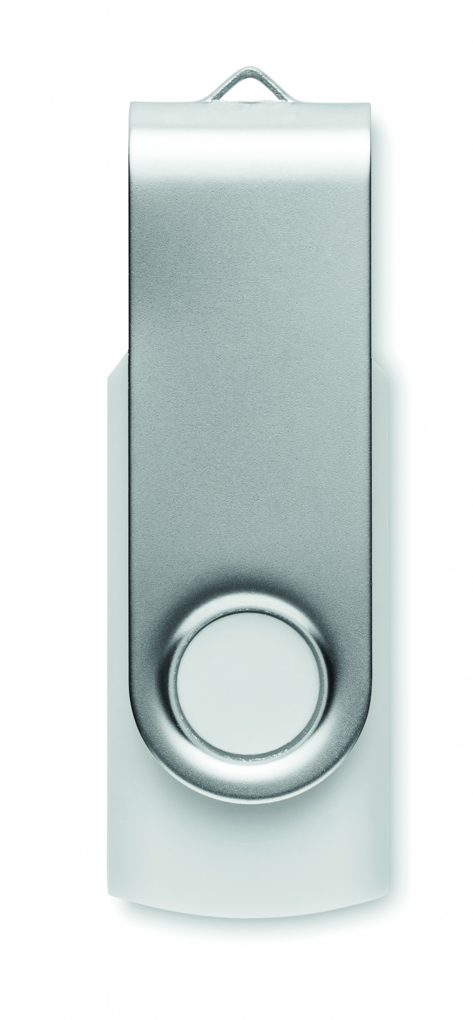 16 GB 2.0 USB-minne med skyddande hölje av återvunnen ABS i vit finish. Vrid om locket och anslut till USB-porten för att börja använda den.