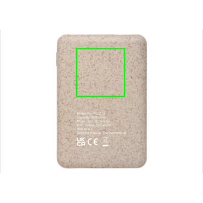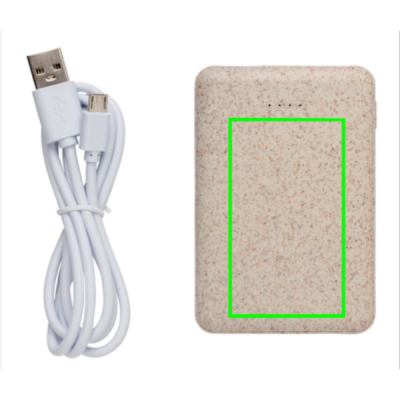 Ultrakompakt 5.000 mAh powerbank i fickformat tillverkad av vetefiber (35%) och ABS. Fulladdad kan du använda powerbanken för att ladda upp din mobiltelefon upp till tre gånger. Powerbanken har ett långvarigt A-graderat 5.000 mAh högdensitet litiumpolymer-batteri. Med dubbel USB port. Indikatorn visar energinivån så att du vet när det är dags att ladda upp. Input 5V/2A. Output USB 1: 5V/2A Output USB 2: 5V/1A
