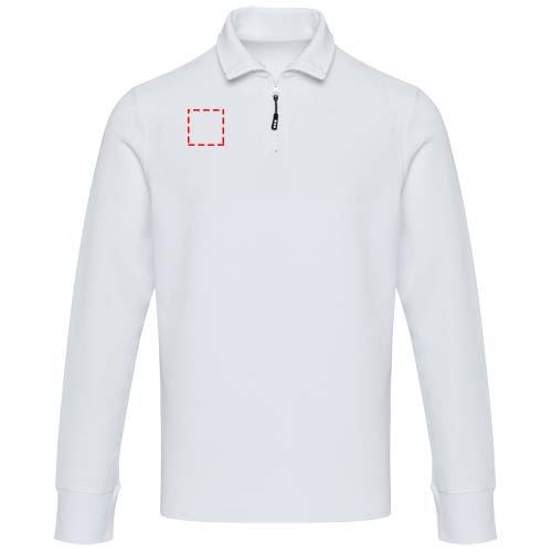 Zeus långärmad unisex piké med halv dragkedja, Vit